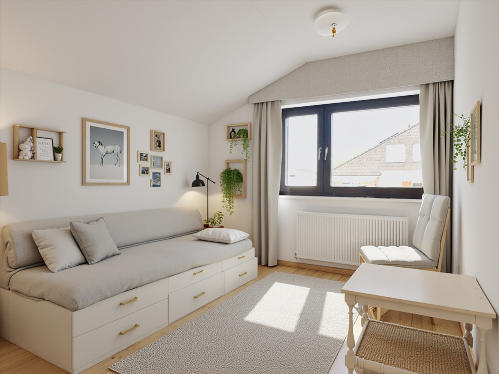 Ob kinderreiche Familie, großzügige Ankleide oder ein separates Homeoffice – hier bleiben kaum Wünsche offen. Auf drei Ebenen verteilen sich insgesamt sechs flexibel nutzbare Zimmer, die sich ideal als Schlaf-, Arbeits-, Gäste- oder Hobbyräume einrichten lassen.