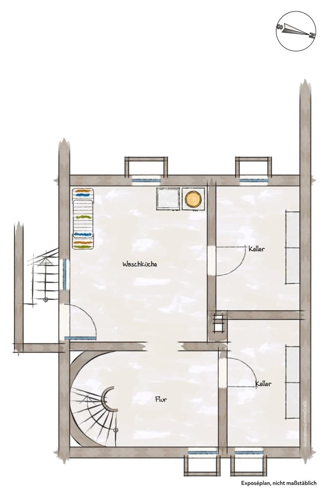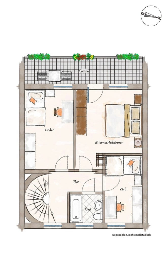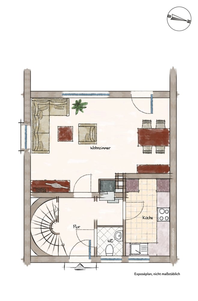 Die in den Grundrissen eingezeichneten Einrichtungsgegenstände, sowie die Immobilienfotos im Exposé dienen lediglich dem Nachweis der Stellmöglichkeit bzw. sind Beispielmöblierungen und sind nicht Bestandteil der Leistung.