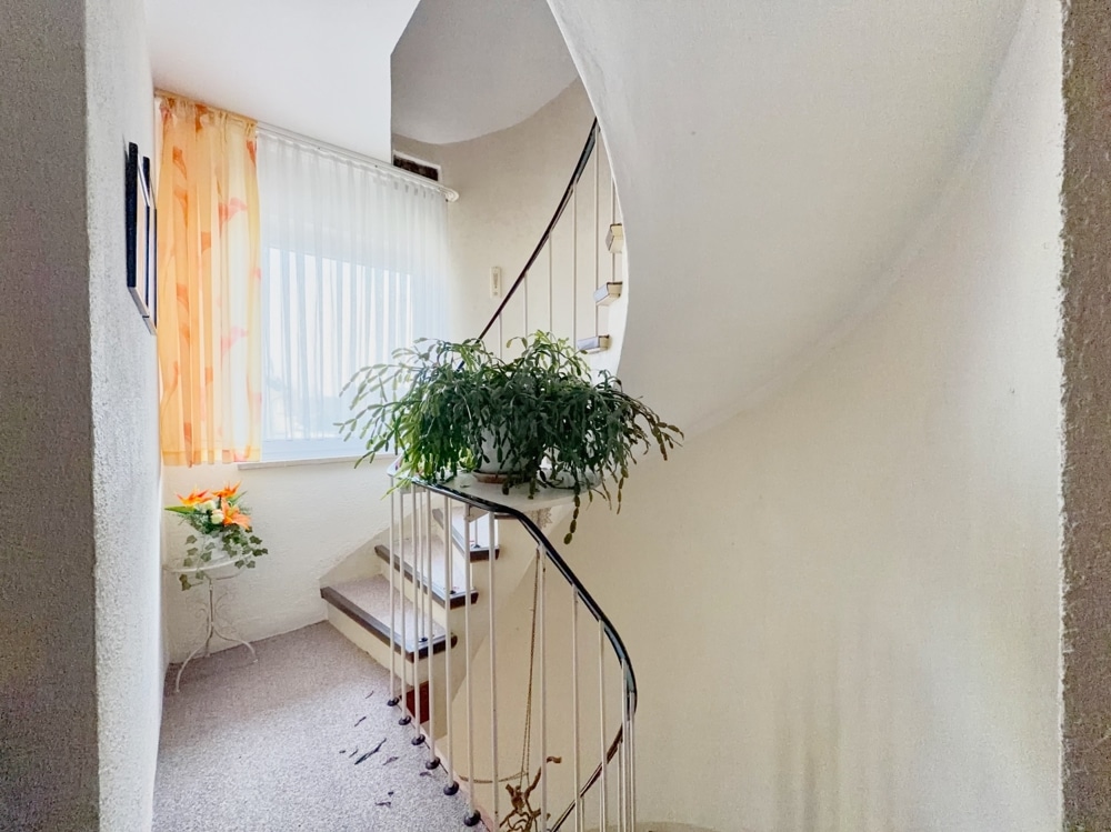 Das vollunterkellerte Haus punktet zusätzlich mit einer praktischen Außentreppe und bietet viel Stauraum sowie flexible Nutzungsmöglichkeiten. Im Dachgeschoss steht weitere Nutzfläche zur Verfügung – perfekt für Hobbys, Homeoffice oder Ausbauideen.